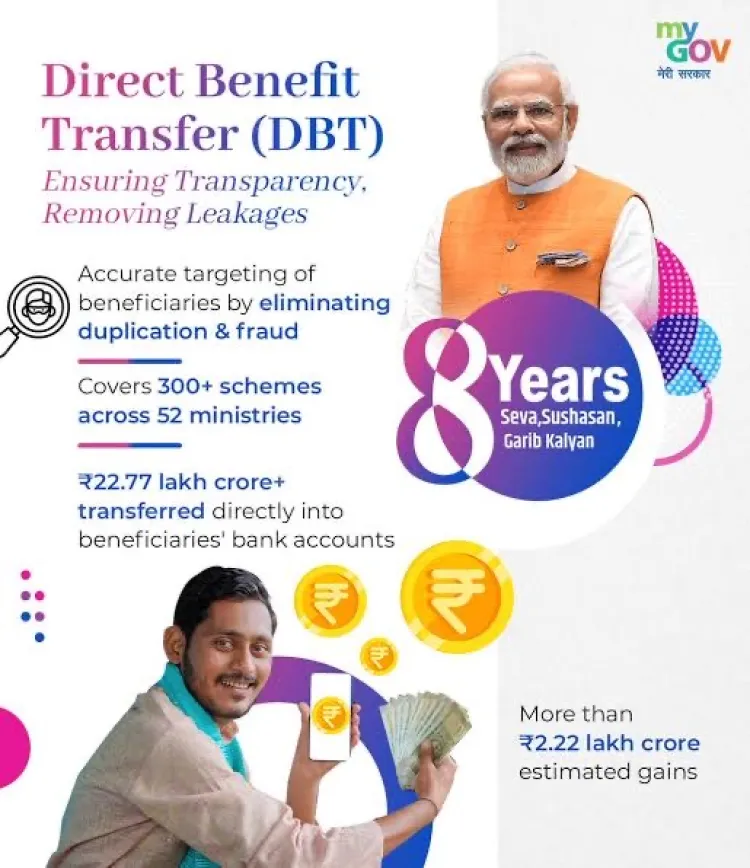 DBT reforms saved ₹2.7 lakh crore in leakages. At the same time, inflation is under control: CPI fell from 7.4% in 2022 to ~5% in 2024.