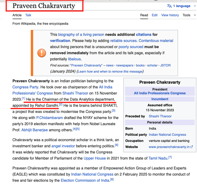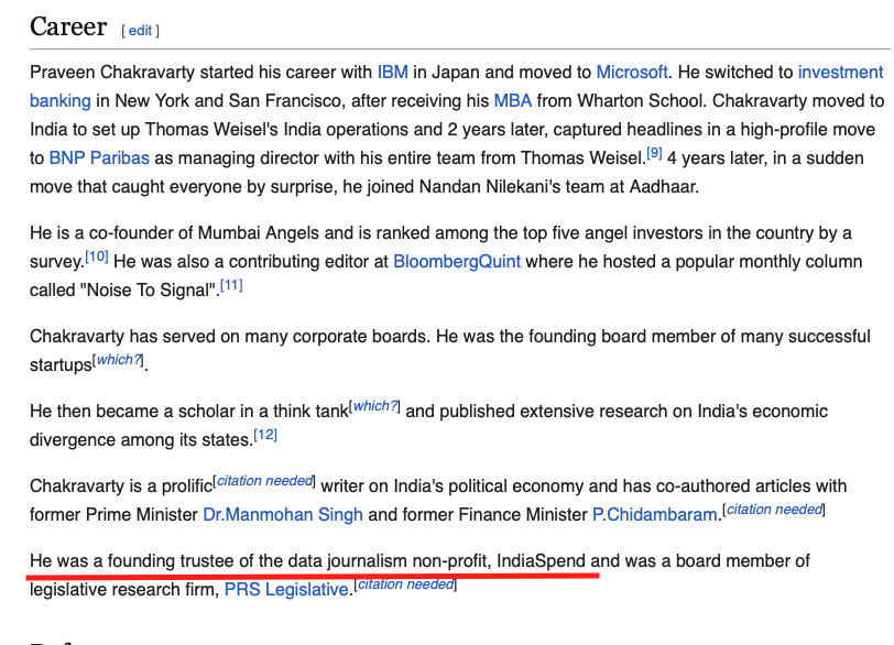 6. Later, she has also worked with the deep state-funded OCCRP and for another outfit, IndiaSpend, where Praveen Chakravarty, the Chairman of the Data Analytics department (which has played a role in preparing Rahul Gandhi’s PPT), was a founding trustee! What a collaboration!