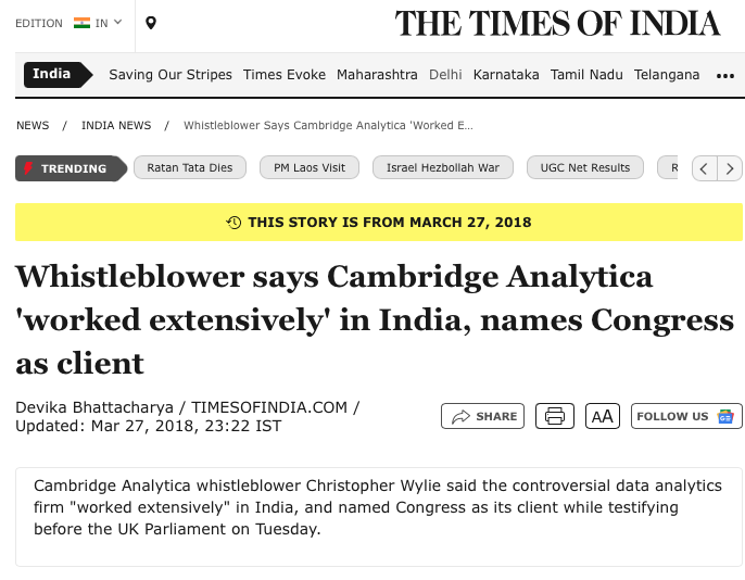 Especially when there is a history of the Congress with data manipulation outfits like Cambridge Analytica