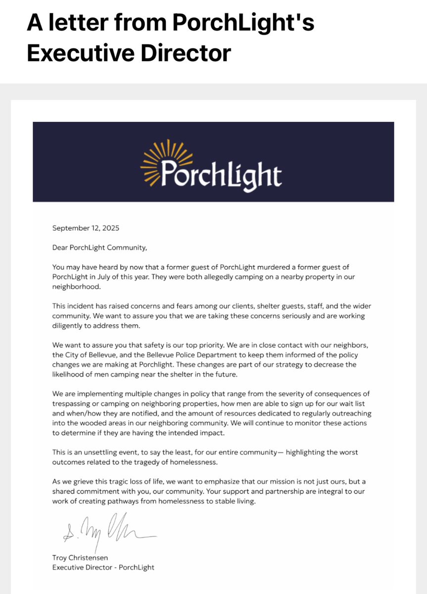 NEW: Bellevue's Plymouth Housing/Porchlight campus continues to be a cancer on the community.