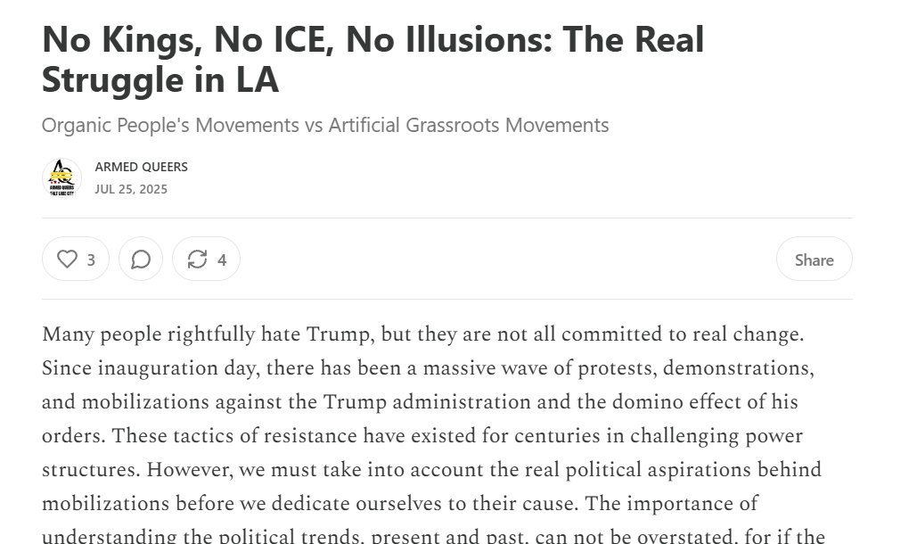 Now this is where it gets fun because this is where this group gets involved with the 50501 (No Kings) movement, which is where the story intersects with Joan Donovan.