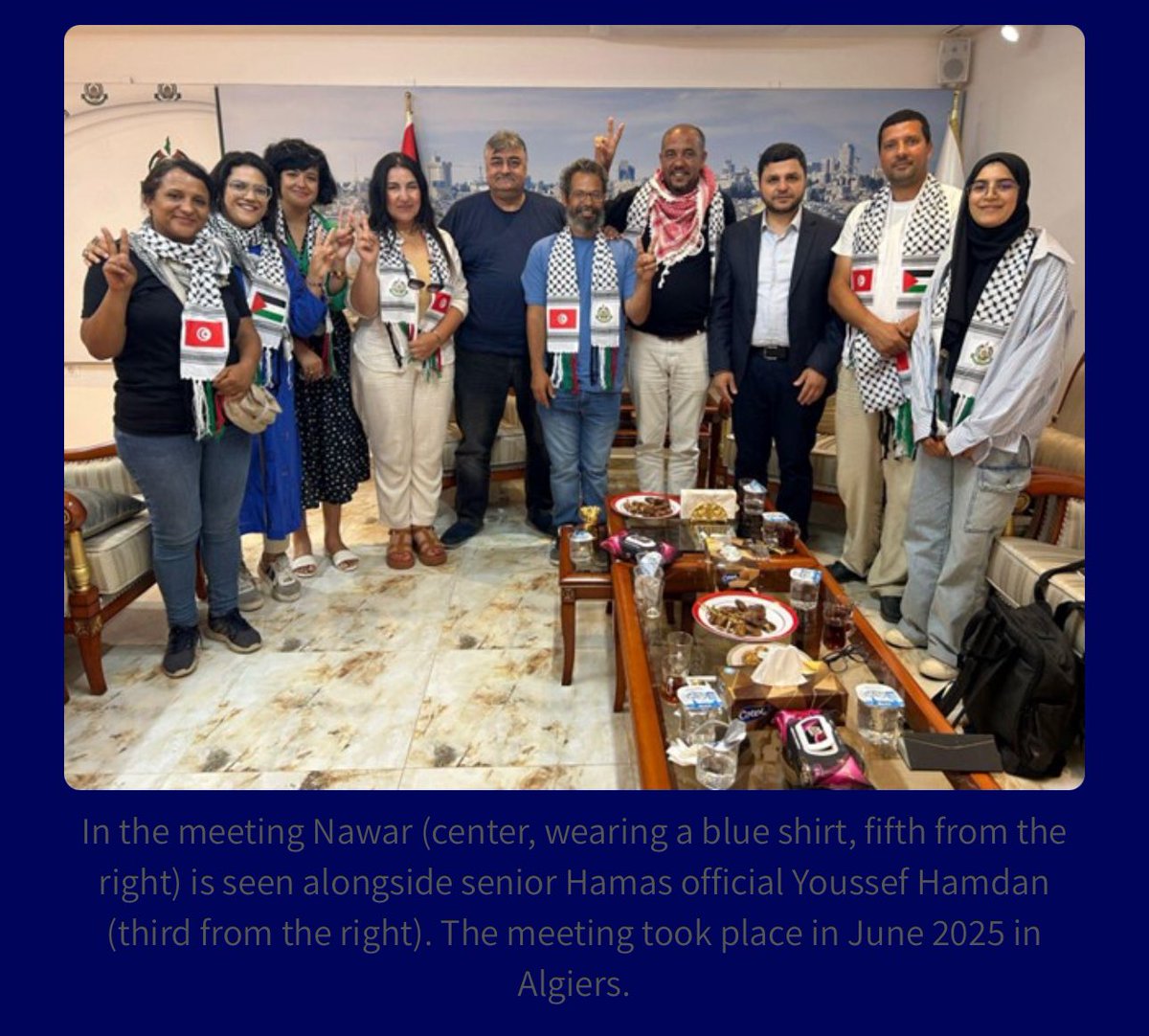 In 2022, Sarri was documented in direct contact with senior Hamas officials during a conference held in Algeria - Marking support for the Palestinians and the 68th anniversary of the Algerian revolution.