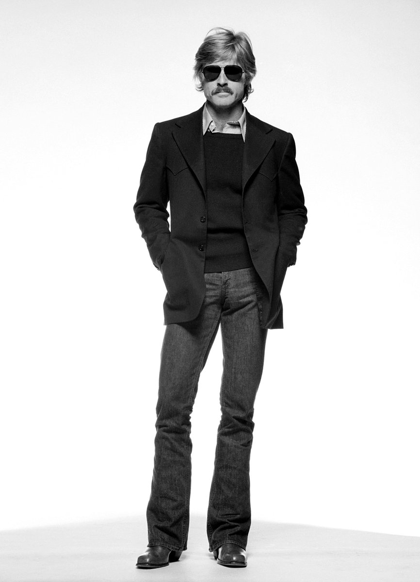 The 1970s is often written off as the "decade that taste forgot." But Redford shows how to do it well (these are actually 1969, but close enough). Start with big eyewear frames, a leather jacket, bootcut jeans, and roper boots or side-zip boots.