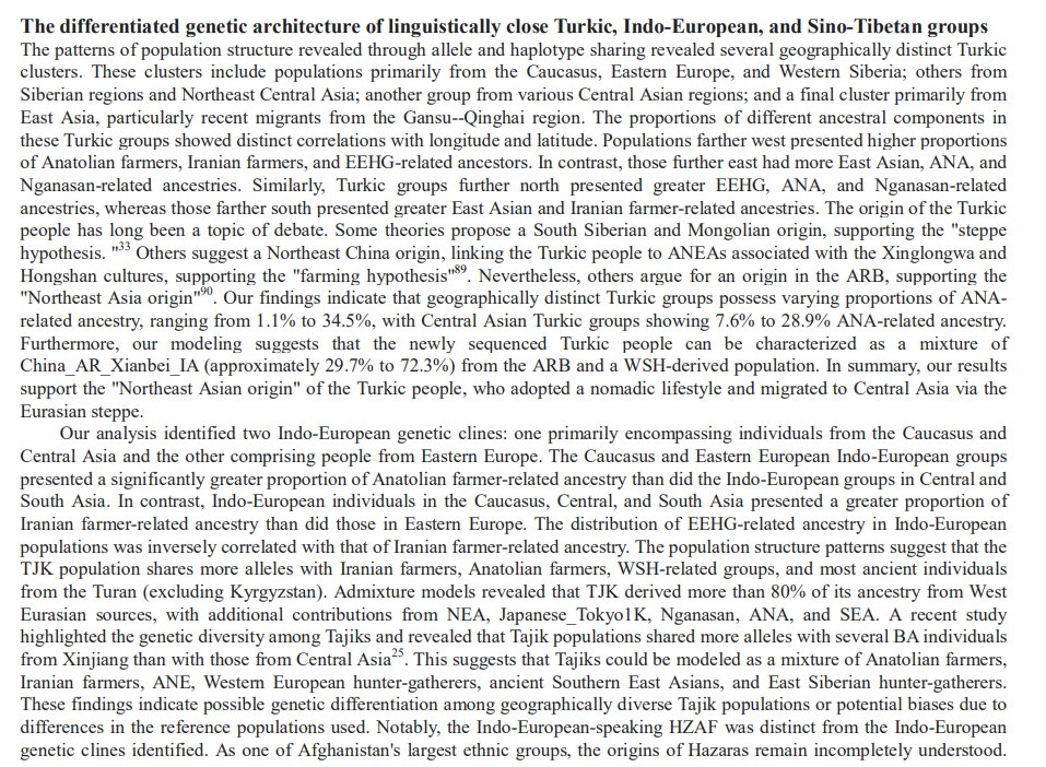 The differentiated genetic architecture of linguistically close Turkic, Indo-European, and Sino-Tibetan groups
