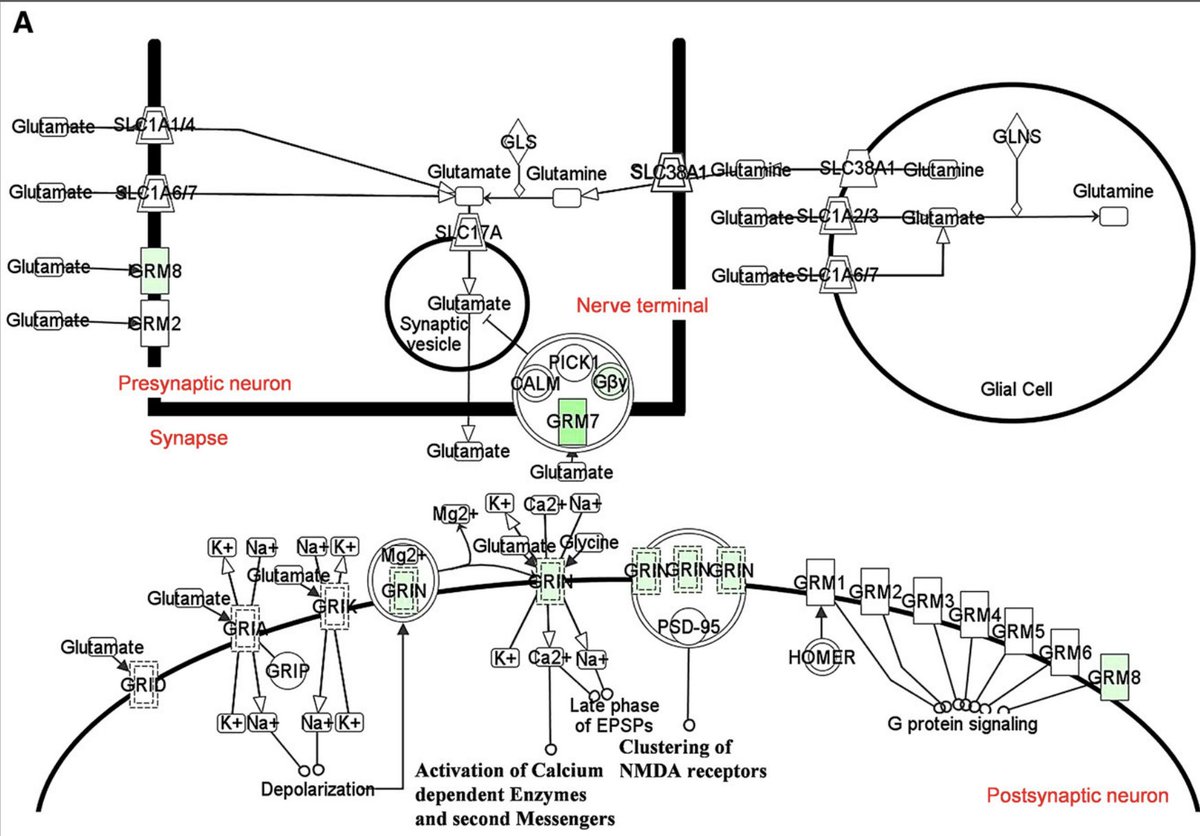 Green = downregulated, so basically this is showing that there were decreases in GLUTAMATE signaling.