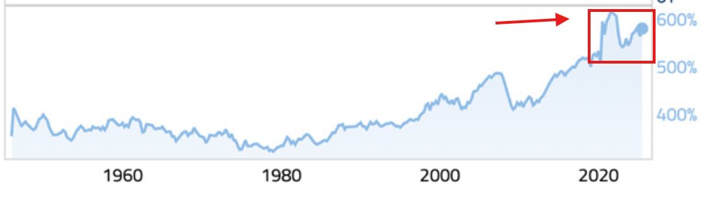 This surpasses the Dot-Com bubble and 1929 peak before the Great Depression.