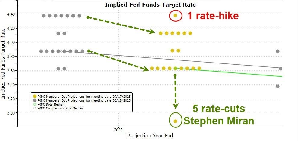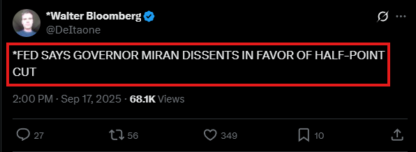 This was Stephen Miran, a recent Trump appointee, who dissented the decision to cut by 25 bps in support of a 50 bps cut today.