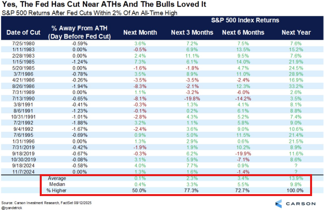 This will be just the 3rd year since 1996 with Fed rate cuts while the S&P 500 is at record highs.