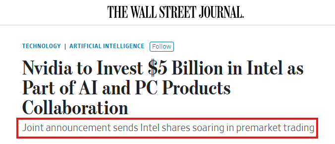 Today, 27 days later, NVIDIA made a massive investment in Intel, sending the US' position +$5 BILLION higher.