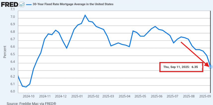 After peaking at 7.08% in early-2025, the average 30Y mortgage rate is now down to 6.35%.