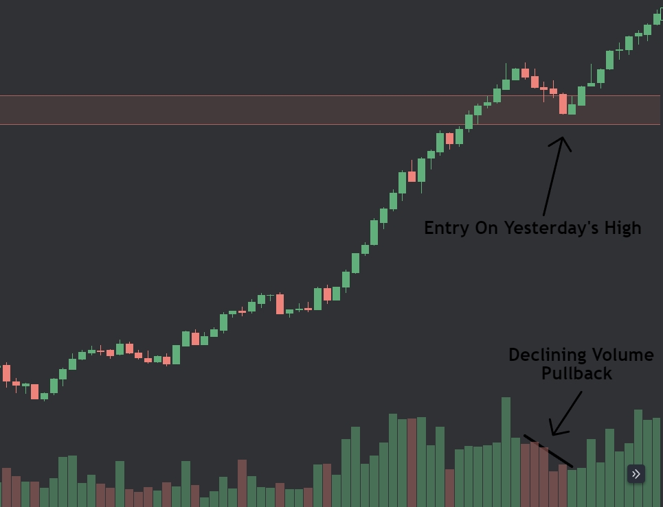 Average/low volume pullbacks are the entry