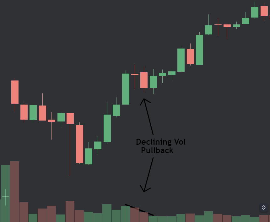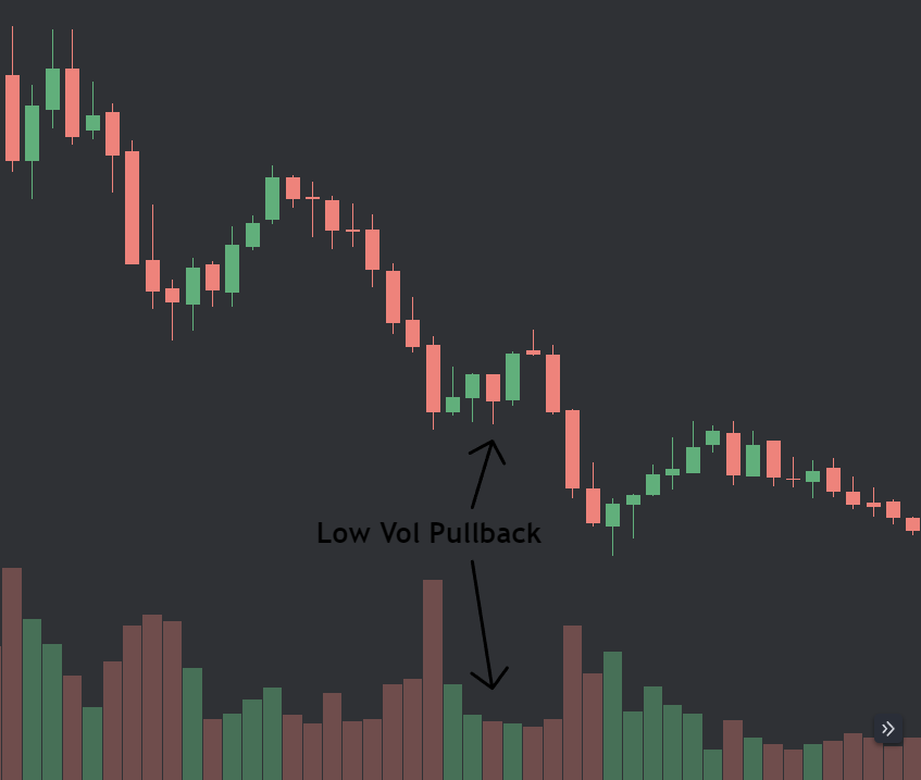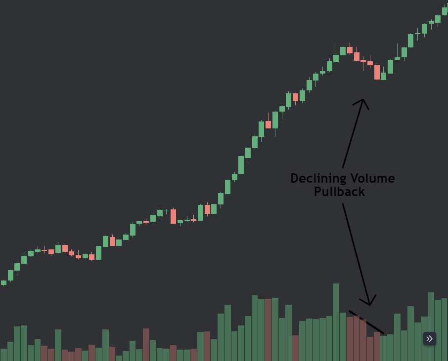 I prefer my pullbacks to be LOWER VOLUME than the trend. The trend should show strength, the pullback should show weakness