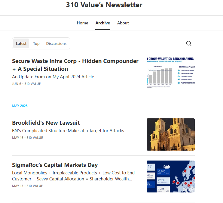 Recent post on 310 Value’s Newsletter