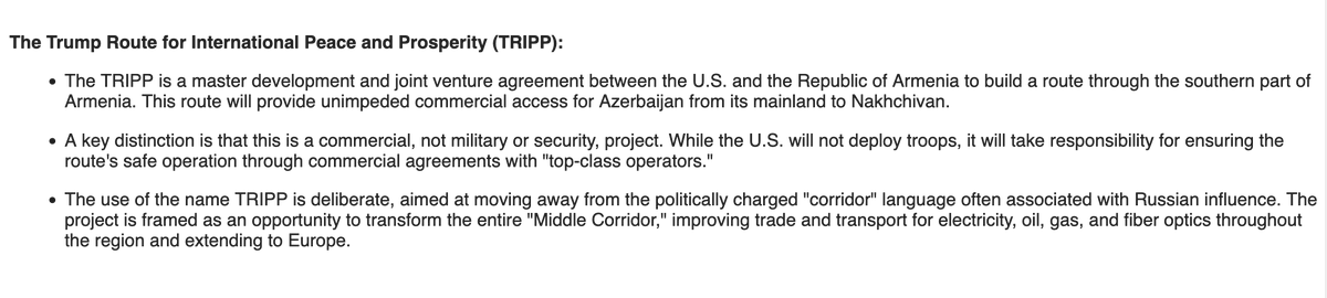 There's no longer corridor. The central focus of the summit is a new transit and development plan called the "Trump Route for International Peace and Prosperity" or TRIPP.