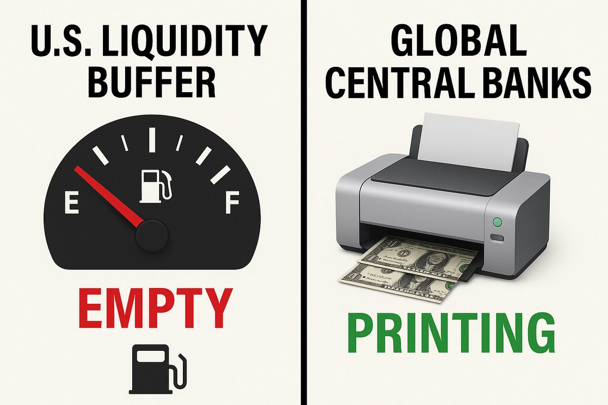 1/ 🌍📉 While U.S. liquidity buffers have run dry, global central banks are quietly opening the taps again.