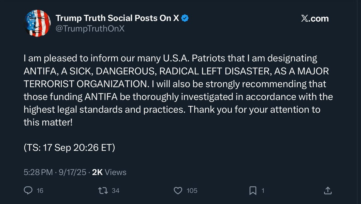 This comes on the heels of Trump and allies claiming that they were "investigating" left-wing groups for potential support of the Charlie Kirk assassin, and would "dismantle" those groups for promoting and funding violence.