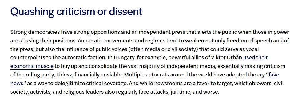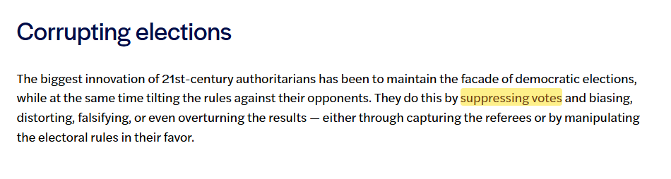 But, quashing that dissent is often used for the most dangerous of these steps "Corrupting Elections"