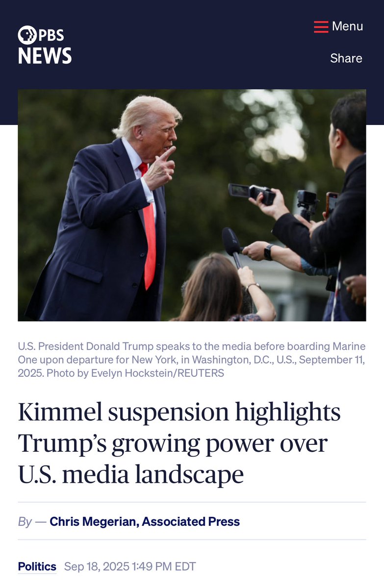 The Kimmel firing allegedly shows Trump’s power over the media, per @AP.