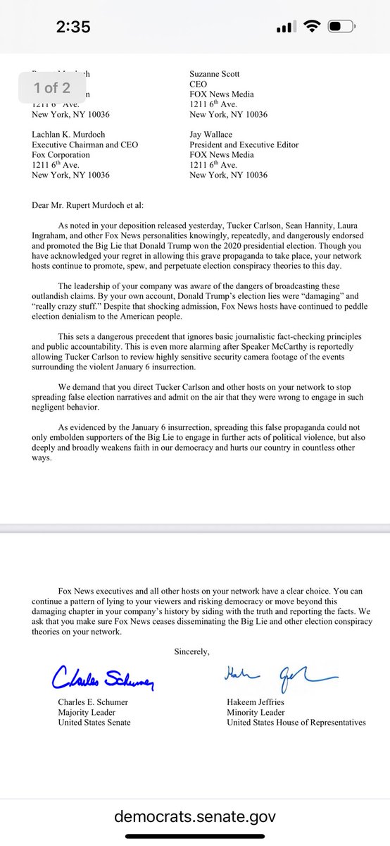 @RepJeffries urged Fox to muzzle or cut ties with Tucker Carlson over disinformation.
