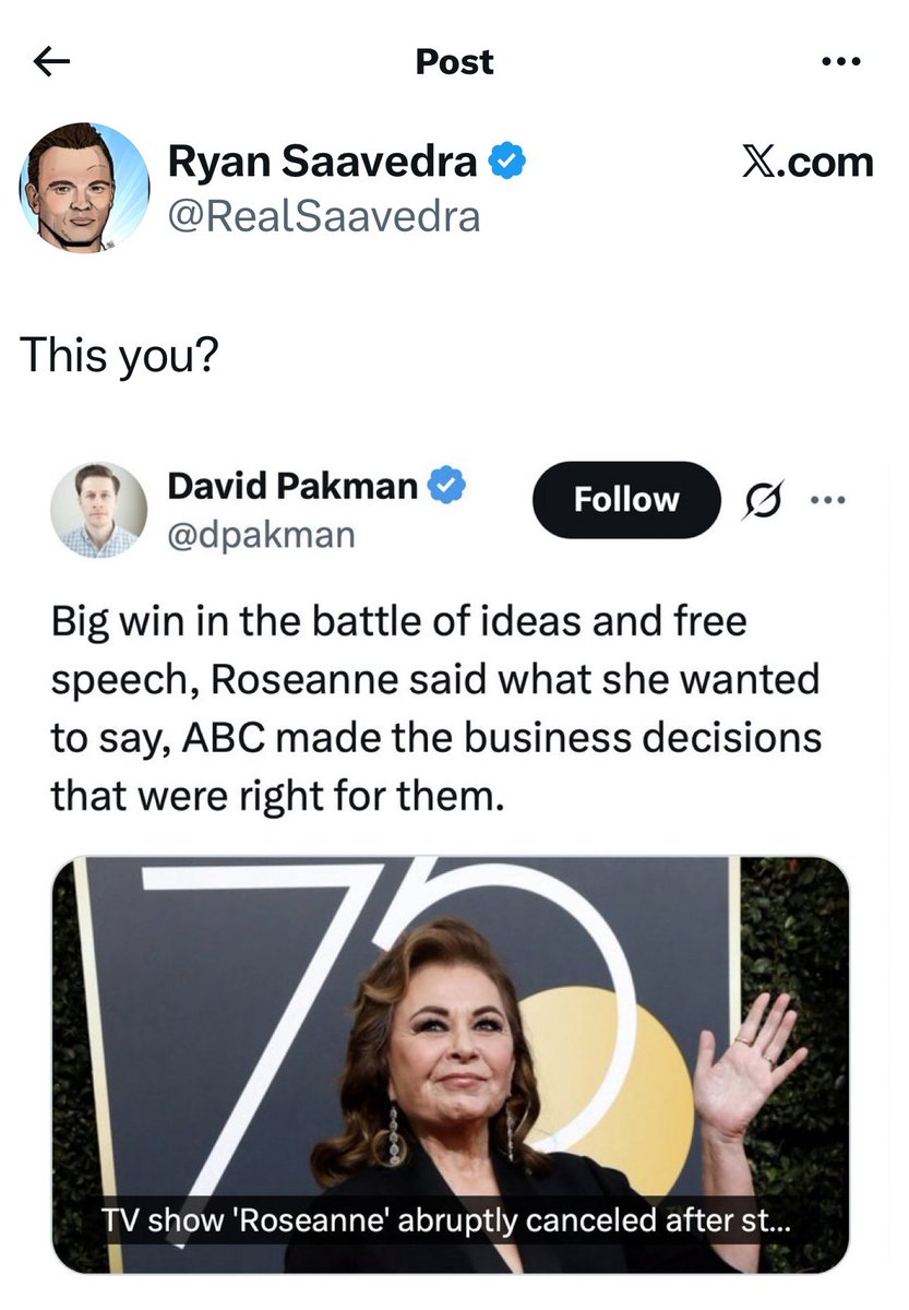 Government action against speech is either “one of the hallmarks of authoritarianism” or a “big win in the battle of ideas” depending on what @dpakman thinks about the party doing it. (H/t @RealSaavedra)