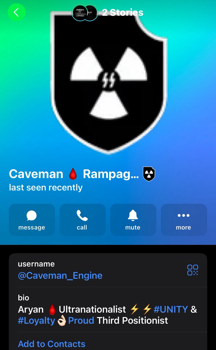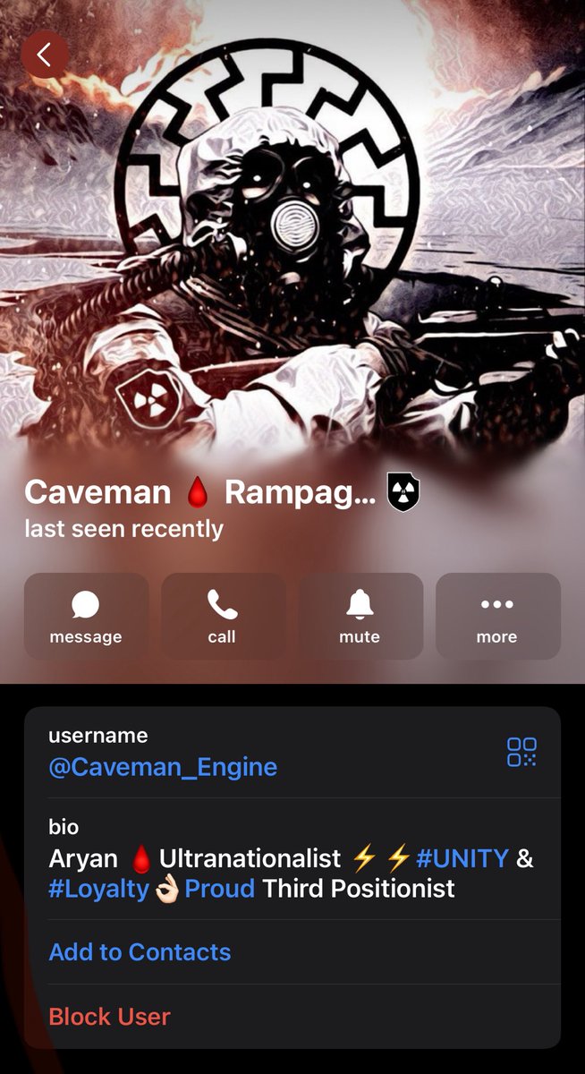 On his Telegram account he promoted Atomwaffen Division and shared their recruitment videos, and had "O9A" on his bio showing adherence to the Order of Nine Angles Satanic terrorist network.