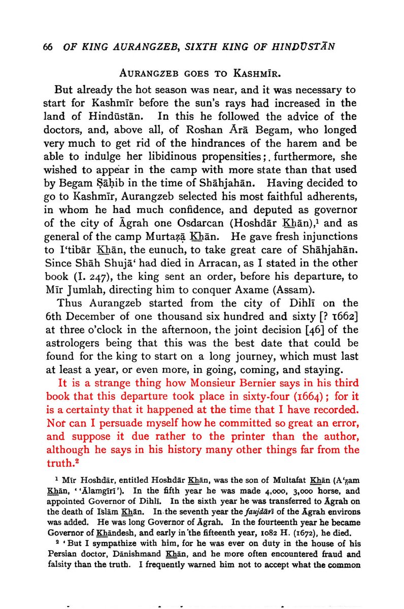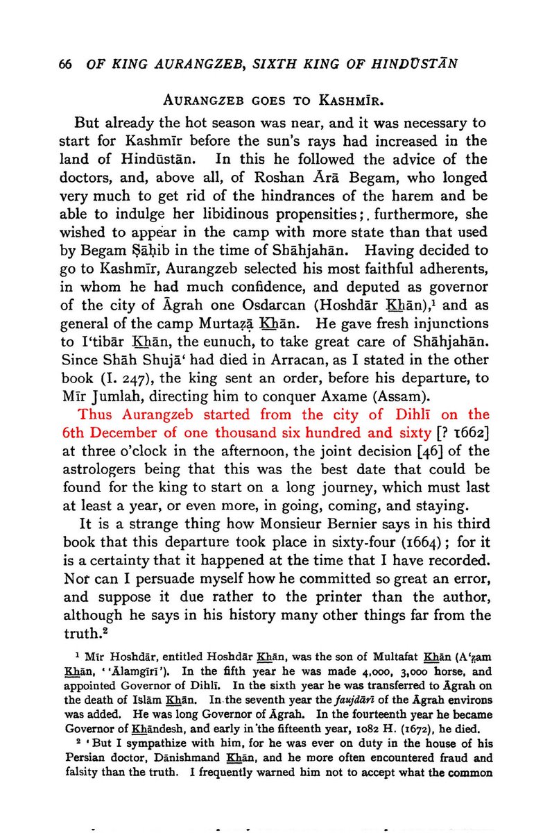On page 66 of the Storia do Mogor by Niccolao Manucci, it is mentioned that Aurangzeb departed from Delhi to Kashmir in 1660.
