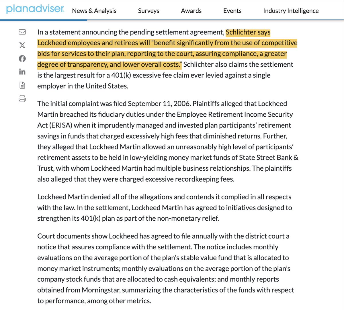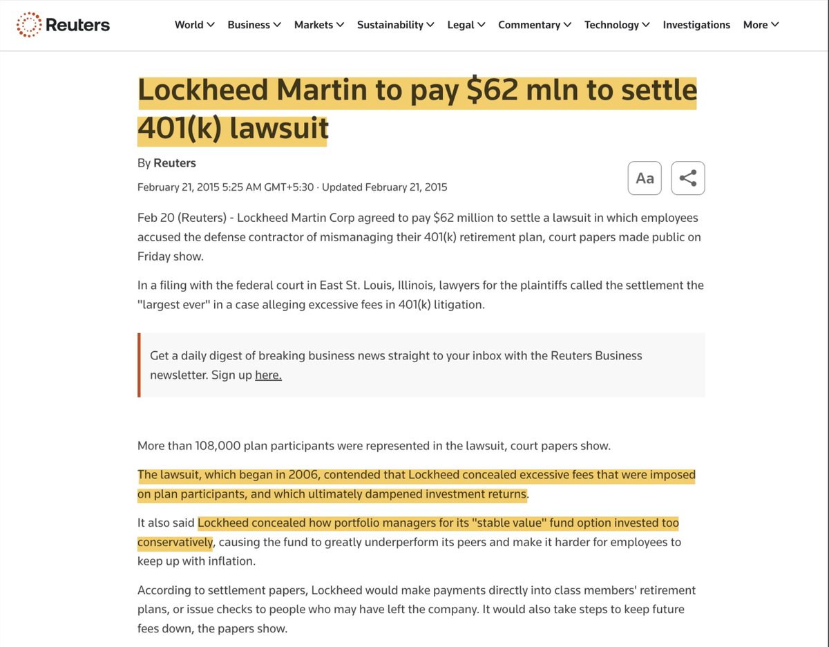 Your 401(k) provider is using the same fee structure that stole $62 million from Lockheed employees.