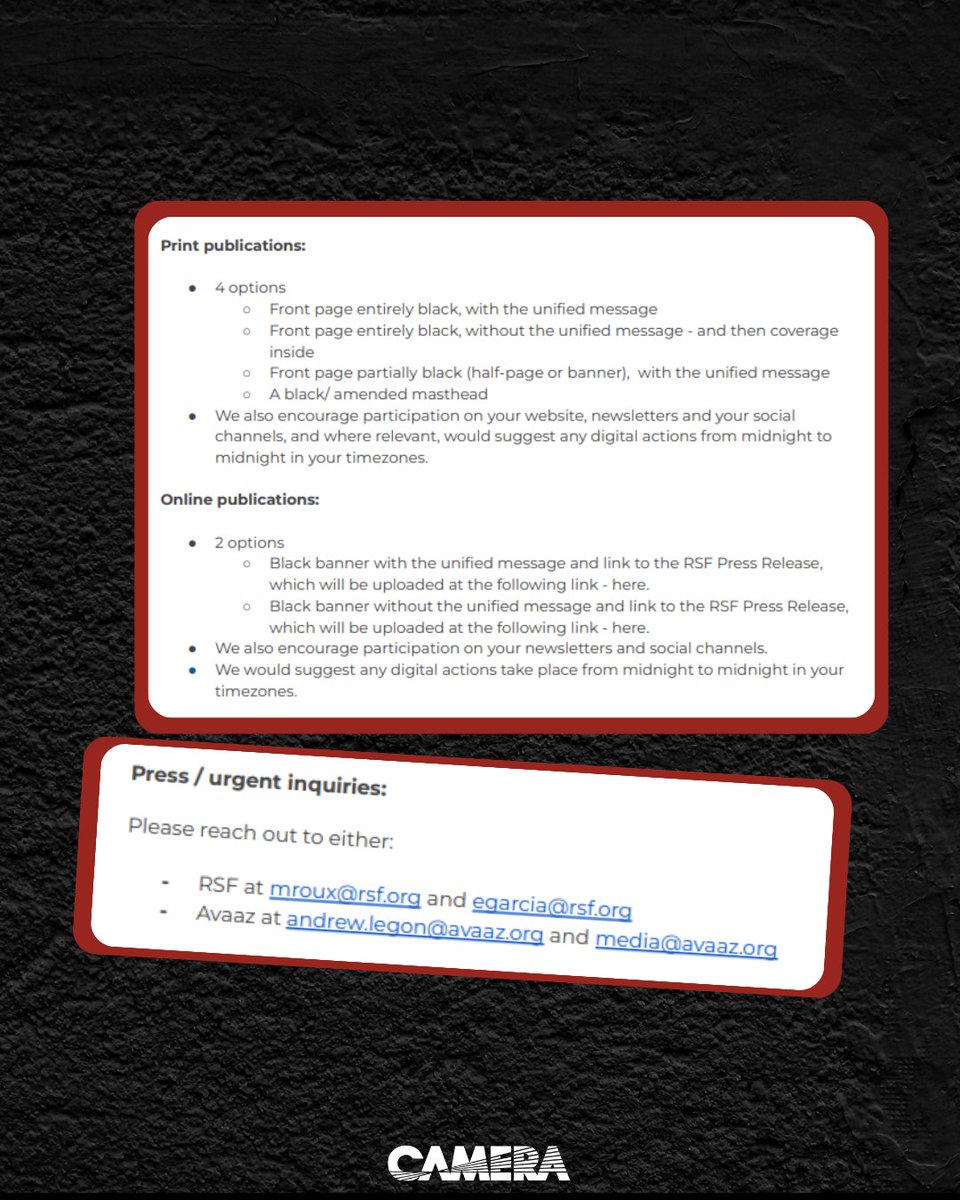 ⚠️Today, Sept 1, @Avaaz & Reporters Without Borders are coordinating over 150 media outlets in at least 50 countries to push a scripted narrative framing Israel as deliberately killing journalists and blocking press freedom.