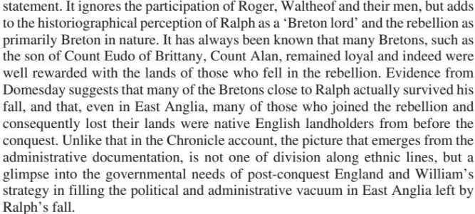 After the rebellion of Earl Ralph, the last gasp of Anglo-Saxon power and identity, which they called the Breton Revolt, even though many Bretons were William’s followers and would remain so, William would purge the ruling class of Anglo-Saxons (Saxons which they called Bretons).