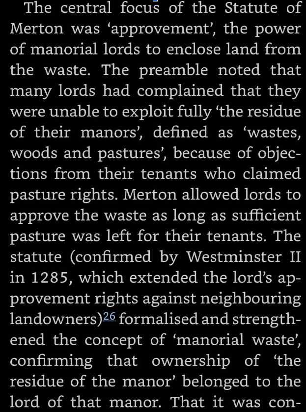 But in East Anglia and other lands, the “waste land” actually comprised a substantial amount of the manor’s potential economic output. Accordingly, a lord in such Enclosure lands must capture this value somehow, as the traditional manor doesn’t produce enough income.