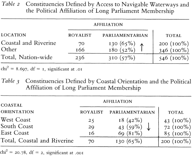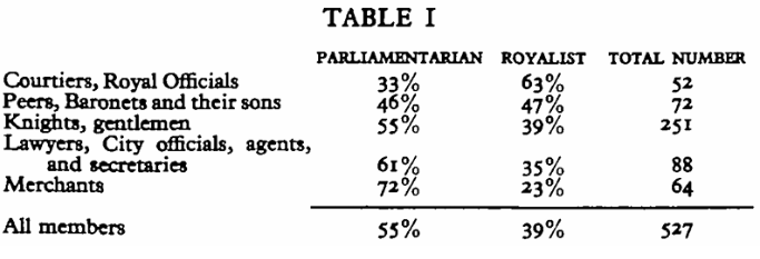 Those who engaged in trade or professions were more Parliamentary, but still predominately of noble blood (which accounts for classification differences between Brunton and Keeler).