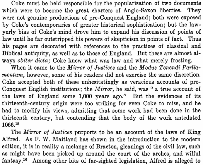 Before the conflict erupted, people had rediscovered work purporting to be a study of Anglo-Saxon law. In reality, it was merely a recounting of the state of London law at the time mixed with made up legal sentiments and the Magna Carta, which was also reproduced.
