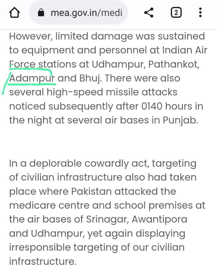 โขImg 4: India acknowledges equipment damage at Adampur, where PAF specifically targeted the S-400 radar.