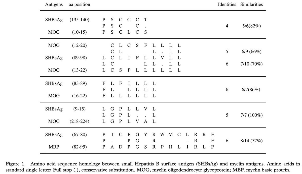 In 1999, every "expert" insisted there was no evidence it matched myelin or could cause autoimmunity. In 2005, that study was finally done. It found 60% of recipients developed myelin autoimmunity (typically persisting for over 6 months) and that the Hep B vaccine had significant overlaps with myelin which trigged this newfound immune reactivity to it.