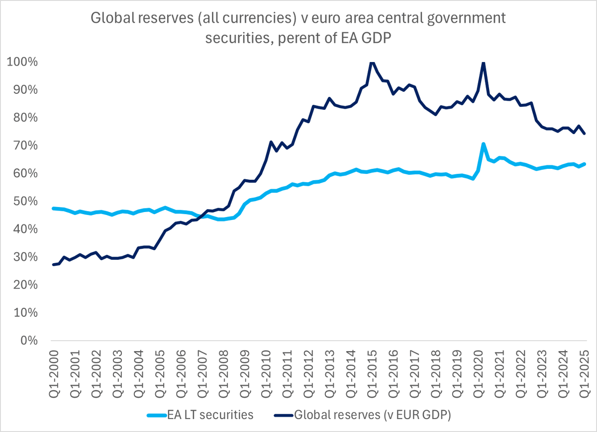 Always striking to me that there is a lot more talk about the dollar as a reserve currency now, when the impact of reserve holdings on markets is waning, than there was talk of the market impact massive reserve growth back when it was happening
