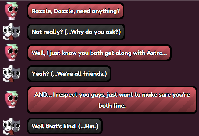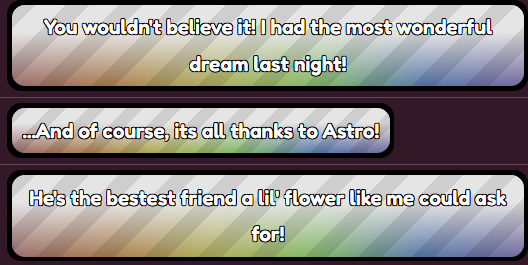 What Astro and Vee have is special: they share a close bond that gets them out of their comfort zones, and evidenced by the merchandise and drawings in Gardenview, they've been this way for a while. They clearly mean a lot to each other.