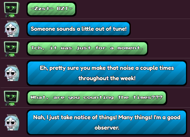 This conversation has Astro offering to aid this time, with him checking in to see if Vee's mic cord is untangled. It's here that Vee tells Astro to "worry about himself more," a far more in-character reply than how she's acted previously. But Astro persists, and Vee accepts.