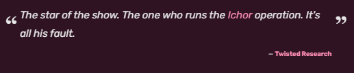 According to Dandy's twisted description, he is the head of the ichor operation, and "it's all his fault." This implies Dandy is responsible for the twisteds inhabiting Gardenview, which would explain why the other toons act so distant towards their star of the show.