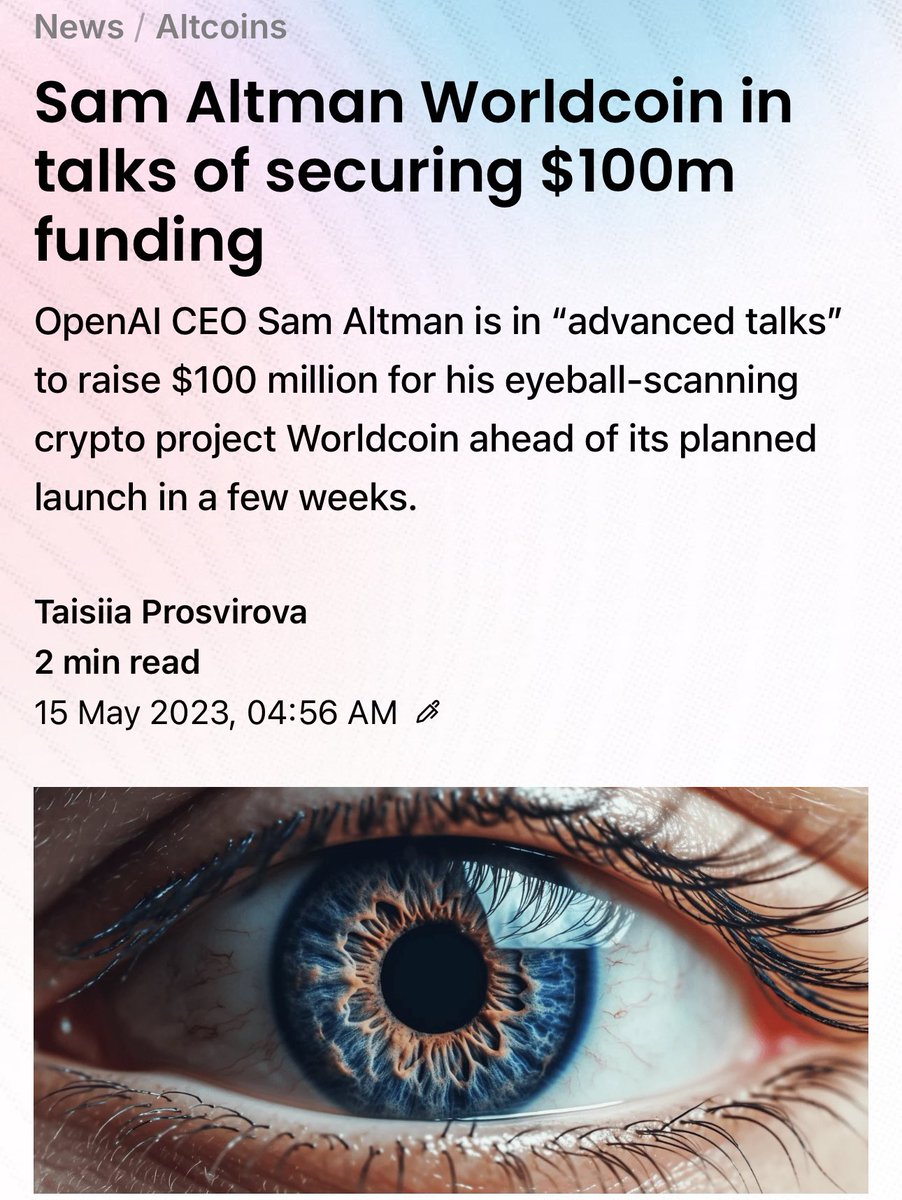 Funded by Andreessen Horowitz and Khosla Ventures in 2022, Worldcoin aims to scan the irises of everyone on earth in order to launch a worldwide identification system in exchange for its tokens, which it envisions to become a global digital currency distributed to everyone in the world in a fair and equitable manner.