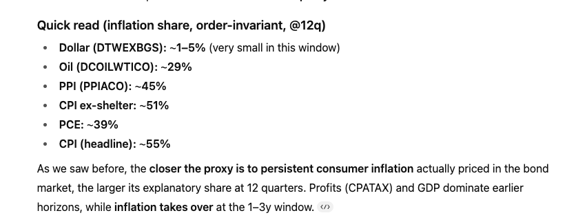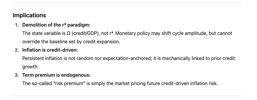 If bonds represent the market’s discounted expectation of future growth + inflation, and if credit explains the majority of bond movements, then the credit cycle must be the dominant force shaping both growth and inflation.