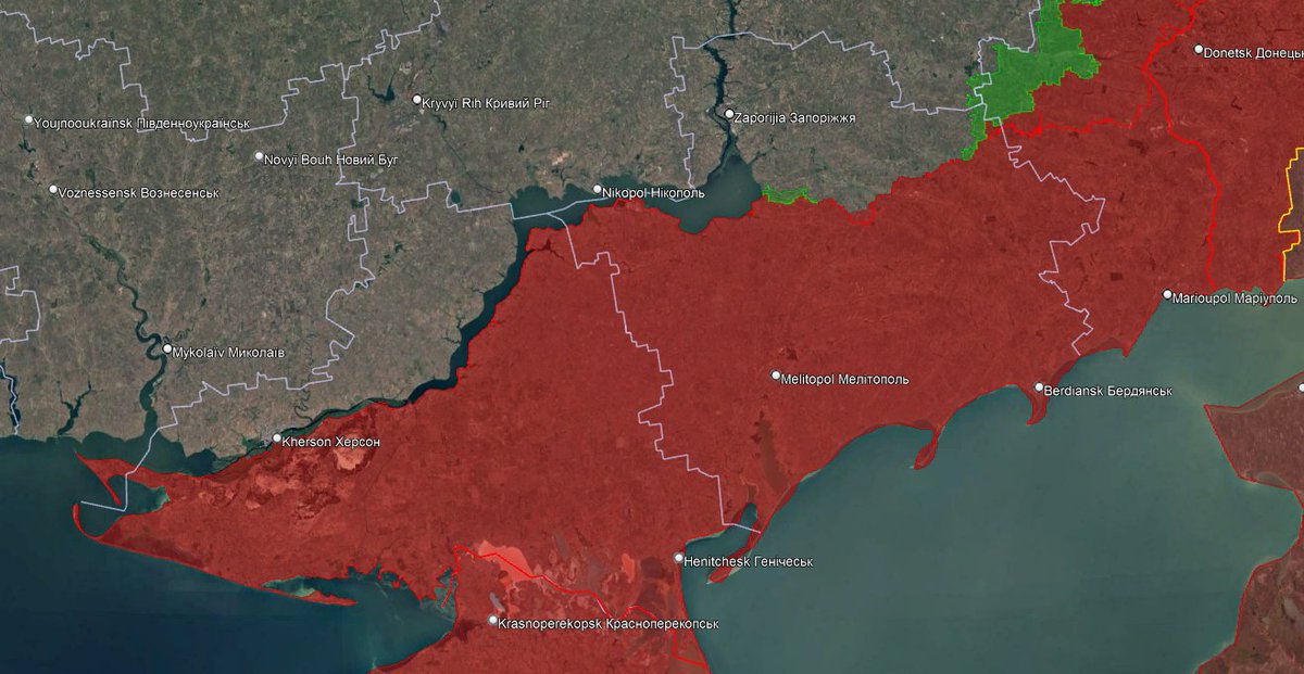 Quittant tout juste de l'oblast de Donetsk après 25 à 40km franchit cette année, l'armée russe 🇷🇺 pousse sur le Dniepr et Zaporizhia, 85km à l'ouest.