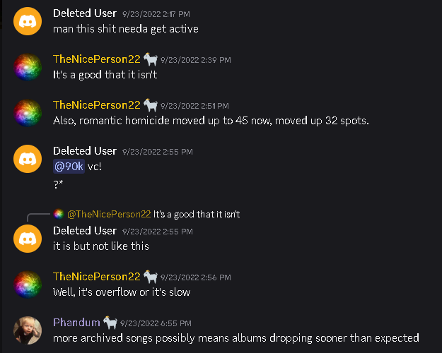 Continuation of my investigation of d4vd's early discord server interactions, and it seems that Celeste (Deleted_User) was an active and founding member from the start, the most active even. The chats indicate that it was a continuation of a previous group chat or server through the manner of interactions centered around the release of Romantic Homicide. In chats, Celeste acknowledged him, becoming certified during this timeframe, and gloated about how she was happy being followed by him before he became certified. D4vd treated the early interactions as an official server with minimal interactions. However, Celeste and another active founding user were seen active in calls together. "90k" or "Geo". She also had active and friendly interactions with the discord manager "Moji" and was seen complaining about perms and server controls, which indicates pre-established connection and relations.