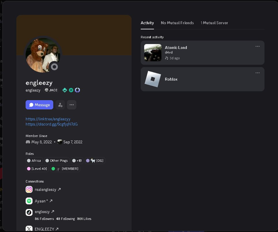 She also interacted with "engleezy" around the time of his collab with d4vd in the server and openly interacted in antagonistic manners that indicate connection once more.