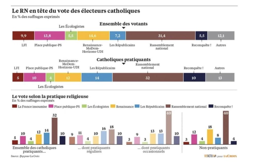 Practicing Catholic tend to be more right-wing than the French average