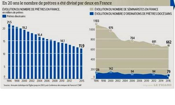 The number of priests in France also dropped massively in the early 2000S and very few were ordained to make up for it