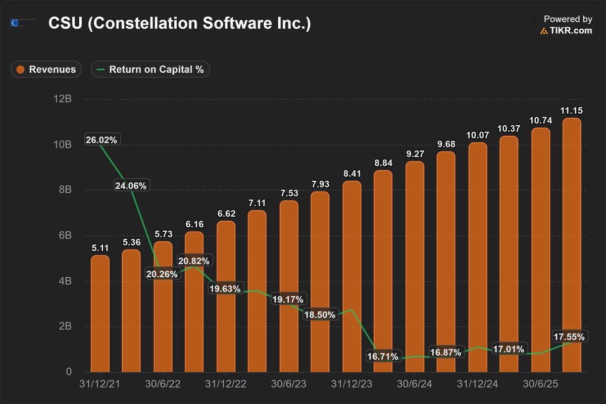 Its most important competitive advantage is not a product, but its operating philosophy. Unlike most companies that centralize capital allocation, Constellation decentralizes decision-making and aligns incentives directly with long-term returns. Over decades, this creates institutional memory that compounds rather than resets.