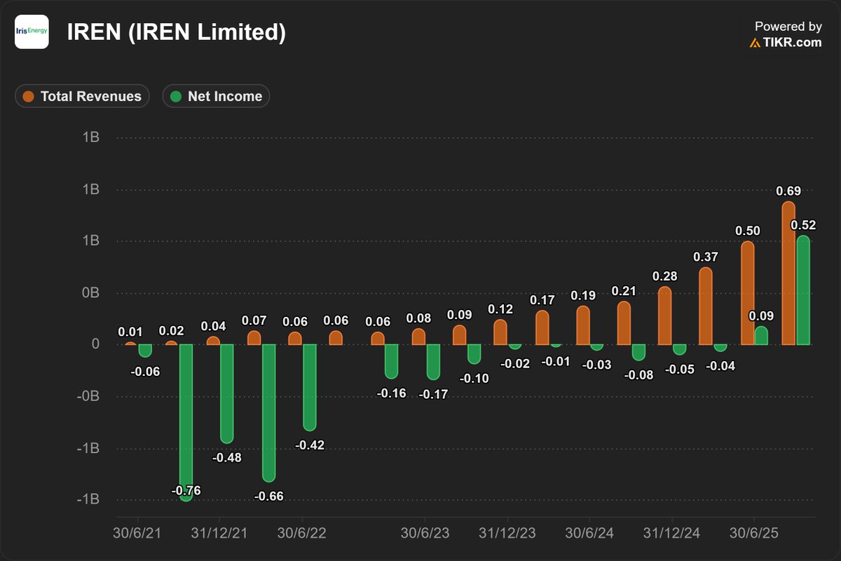 IREN reached positive net income for the first time and is expected to sustain profitability as its data center operations continue to scale.