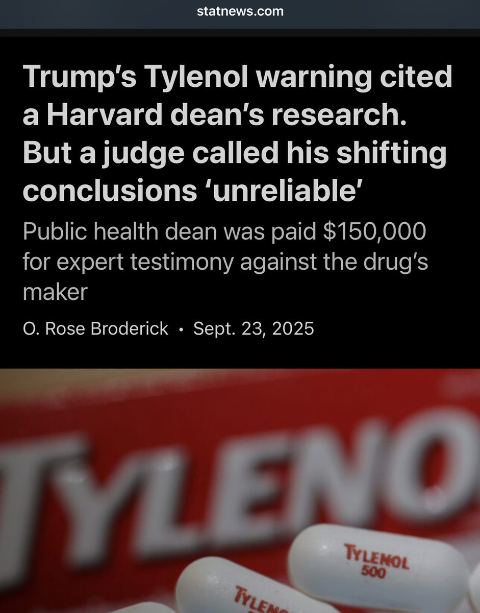 @WajahatAli 12) Oh. Gee. Fun fact—I’ve never been paid for any expert testimony either for/against the maker of Tylenol. statnews.com/2025/09/23/res…