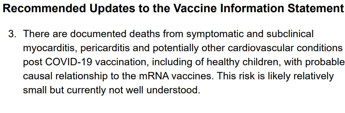 Again their slides only note mRNA here. Although important to research this rare outcome, it's certainly not common enough to guide policy. It'd be like removing seat belts from all cars because in a few accidents a year, they contribute to the outcome