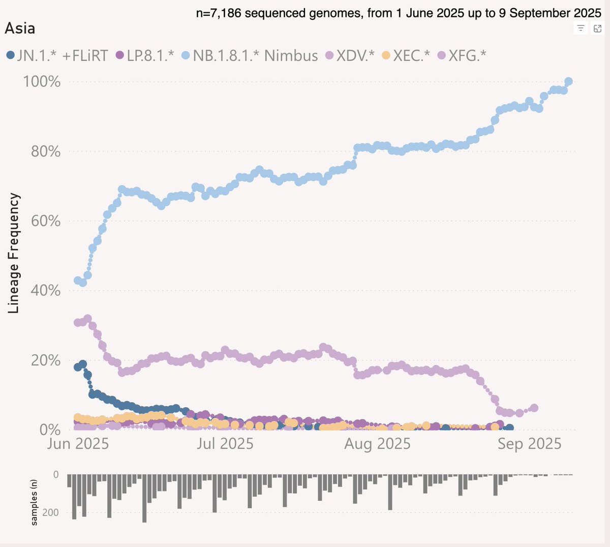 38-8/ ...but Asia and Oceana belong to Nimbus. I don't remember a pattern like this since 2021 when the VoCs Beta, Gamma, and Lambda each dominated a region of the world.
